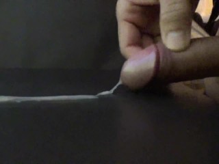 寸止めオナニーのつもりが、ほとんど漏れ出してしまっている早漏君。