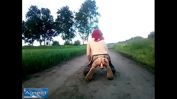 Crossdresser masturbates anal pussy on the road
