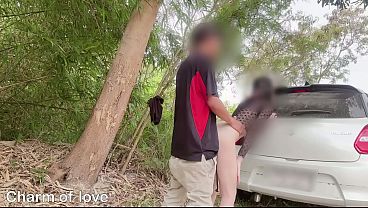 Racy Asian babe moans without care as she gets railed in the public parking lot