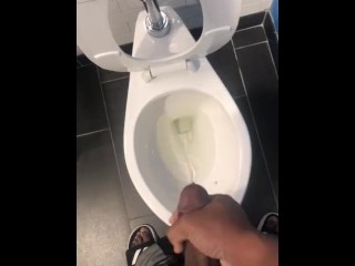 Shooting lots of thick cum in a public hotel bathroom. Some hit on my phone camera