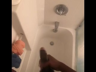 Stroking my big black dick in the shower