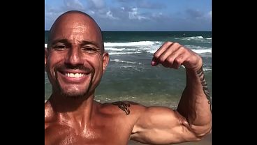 BICEP FLEXING AT THE BEACH