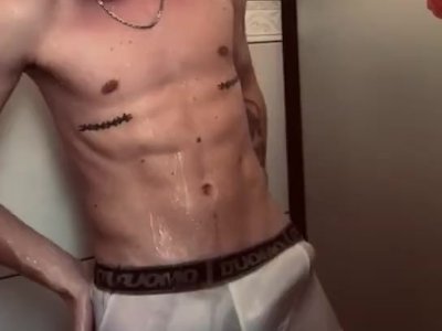 Molhando a cueca branca no banho