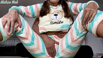 skinny babe girl in pajamas masturbate and make big squirt