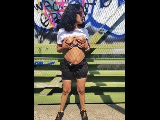 BIG FAT BROWN BOOTY SLIM EBONY REDBONE OUTSIDE PUBLIC SOLO FEMALE