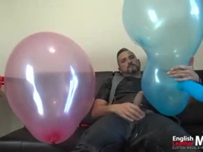 DILF blows up three balloons, pops one and cums on the other two PREVIEW