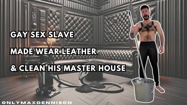Gay sex slave made wear leather & clean his master house