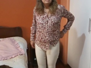 Latina mother loves showing off in her underwear so that her young stepson jerks off her watching he
