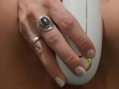 Elle branle clito avec un sex-toy après avoir excité sa bite.