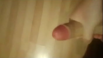 The guy starts stroking his dick