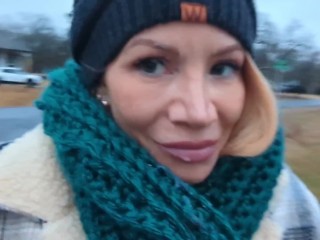 Risky Amateur Public Blowjob and Cum Walk on Natural Tits - POV