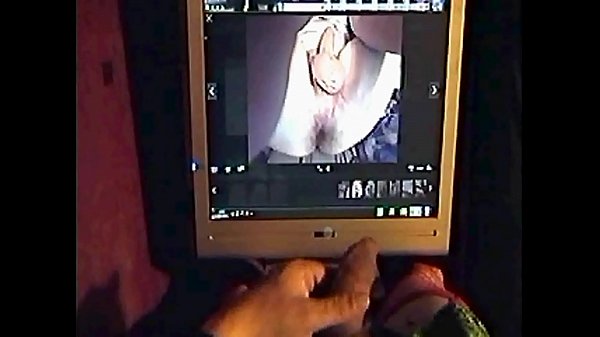bisexual crossdressing sissy faggot masturbaits over a pic on his computer of a mans ass and creams all over it