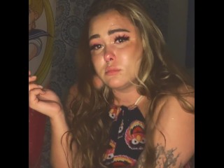 cute inked bitch gagging