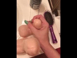 Double fucking my pussy in the bath
