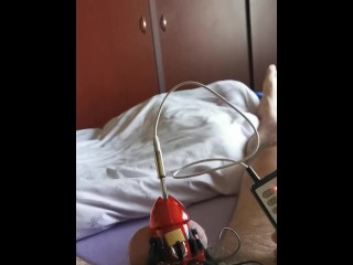E-stim cum milking with chastity cage