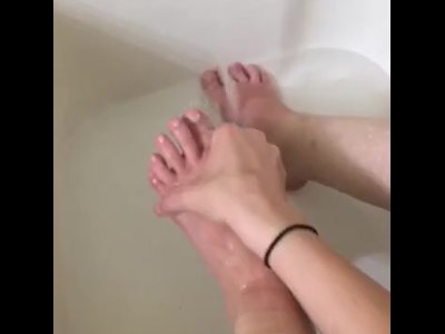 Feet and cock, scrubbing and rubbing