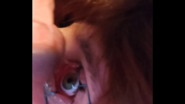 My glans kisses her eye and cum in it