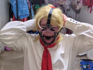 PVC office Lady Gagged and Bound with assorted vibrators in panties