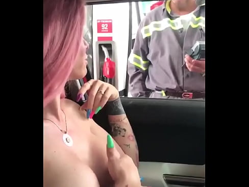 Tetona echando gasolina