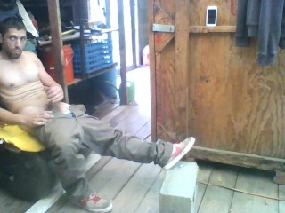 Jerking Off in Shed at Work