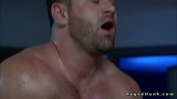 Muscle colleagues anal fuck on a desk after a tough day at work