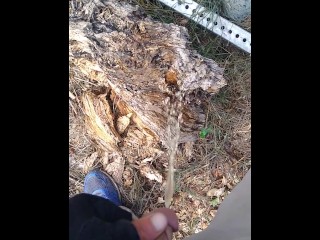 Dude takes a major leak in nature