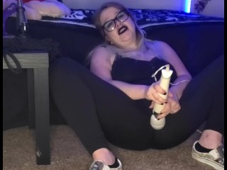 Horny Goth Girl Uses Hitachi in Leggins Til She Cums