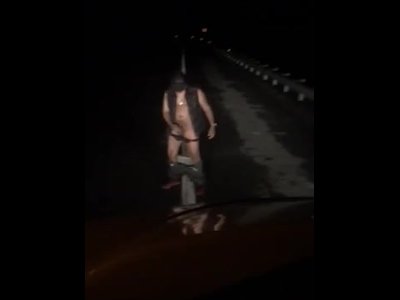 Risky highway exhibitionist