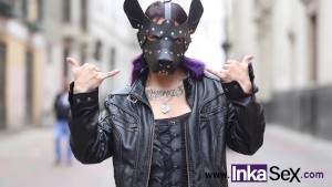 Puta peruana le gusta exhibirse en la calle con m�scara de perra de cuero