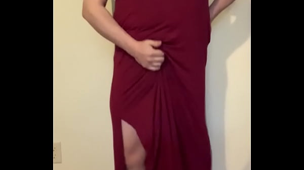Man in Red Dress Slowly Shows His Bra, Strips Down to His Bra and Panties, Then Jerks Off