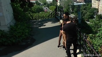 Tied up busty petite babe sex in public