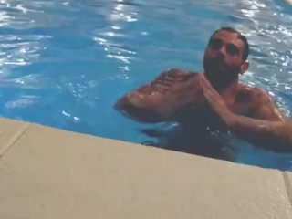 Italian guy at the pool showing off