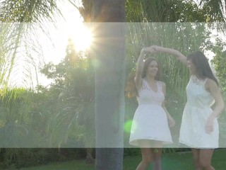 Sexy college lesbians love each other outdoors