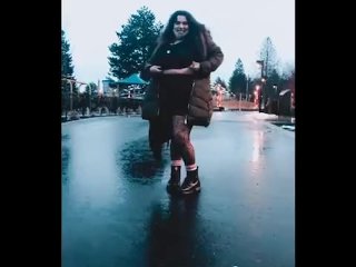 Cute chubby lightskin flashing tits in public while it rains