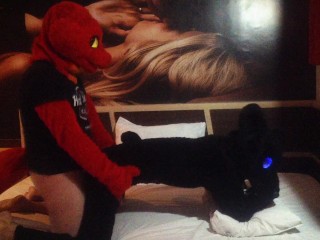 Red Lizard playing with himself on his new fursuit. Pawing Murrsuit Cum