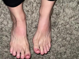 Long skinny toes play on carpet while waiting for you..