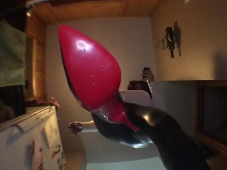 Latex teen solo plays with ass and pussy, butt plug inflatable toys