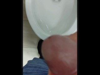 Lunch break nut in work bathroom