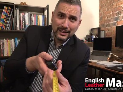 Leather guy compares his cock with small dick fag and measures differences SPH PREVIEW