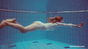 Hot babe Melisa Darkova dressed underwater