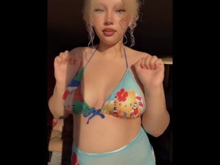 Lilith Kawaii experimentando micro bikini e maiô bem pequeno, mostrando os labios