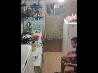 I frying pancaks at night.