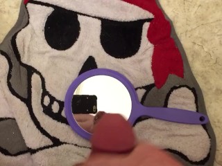 Jack off in front of mirror with cum