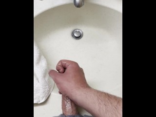 TIGHT SHAFT GETS PULLED ON & SQUEEZED UNTIL PRECUM OOZES OUT & A SOLID CUM SHOT GOES ON TOP OF HIM!!