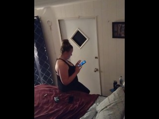 White milf smoking while watching videos on her phone