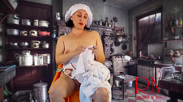 Housewife in pantyhose in the kitchen. Naked maid gets an orgasm while cooking. s4