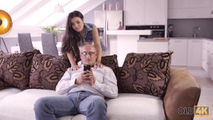 OLD4K. Dirty girl turns rich old man who is bound now to score twat