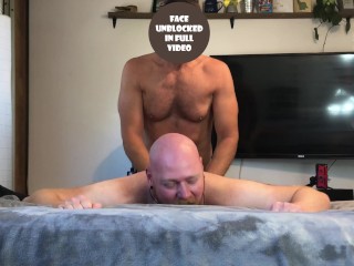 Asslicked skinny Latino jizzed by DILF after bareback sex
