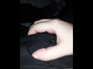 Thrusting Up and Jerking Off His Packer Through Boxers and Open Button Sweats