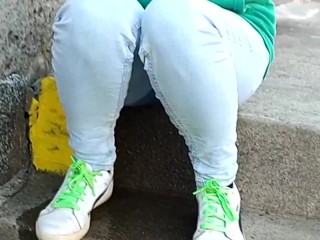 PEEING IN JEANS FOR FUN OUTSIDE AGAIN